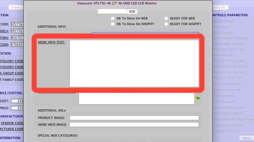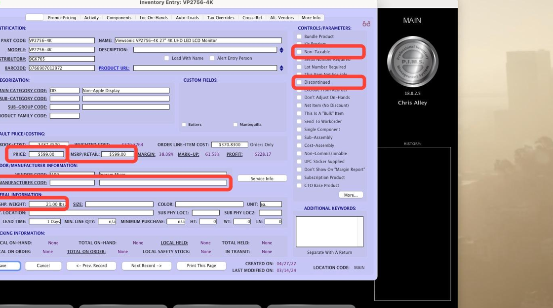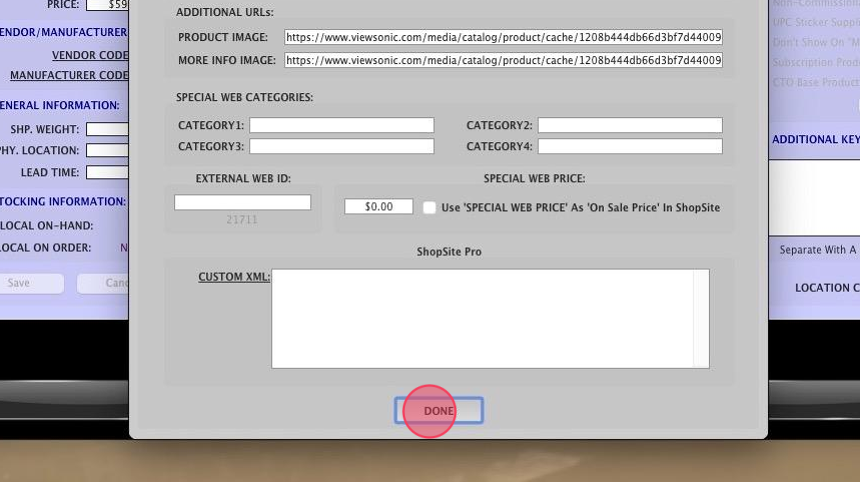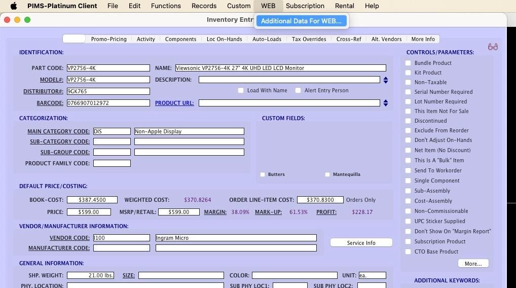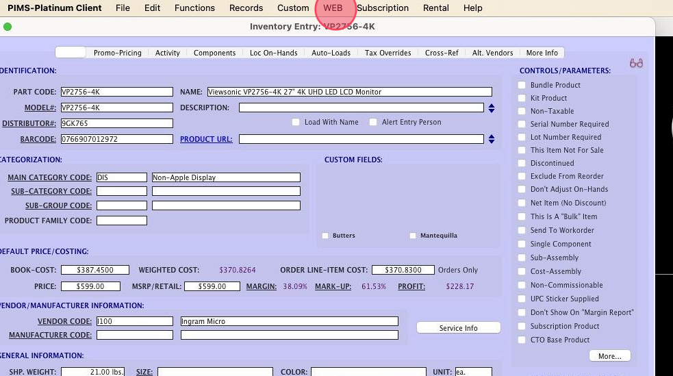 2. Make sure the data on the inventory is accurate. In particular, you want to make sure the PRICE, MSRP, MANUFACTURER CODE, and SHP. WEIGHT fields are filled in correctly.