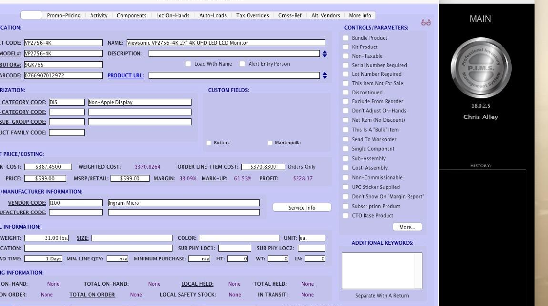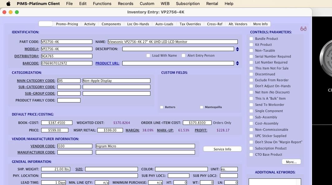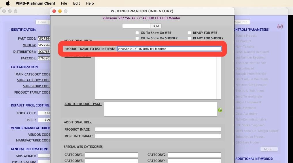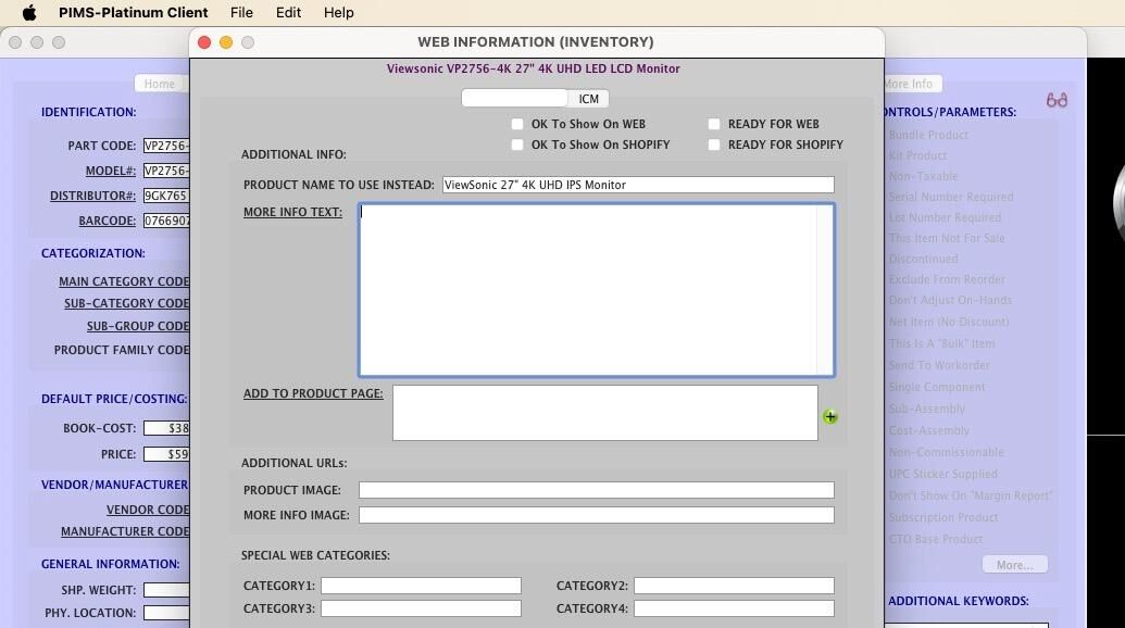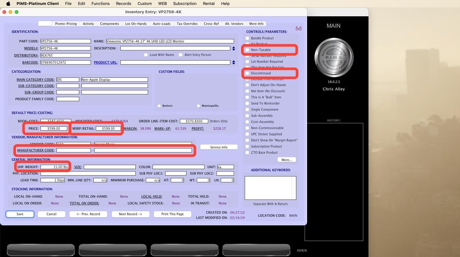2. Make sure the data on the inventory is accurate. In particular, you want to make sure the PRICE, MSRP, MANUFACTURER CODE, and SHP. WEIGHT fields are filled in correctly.