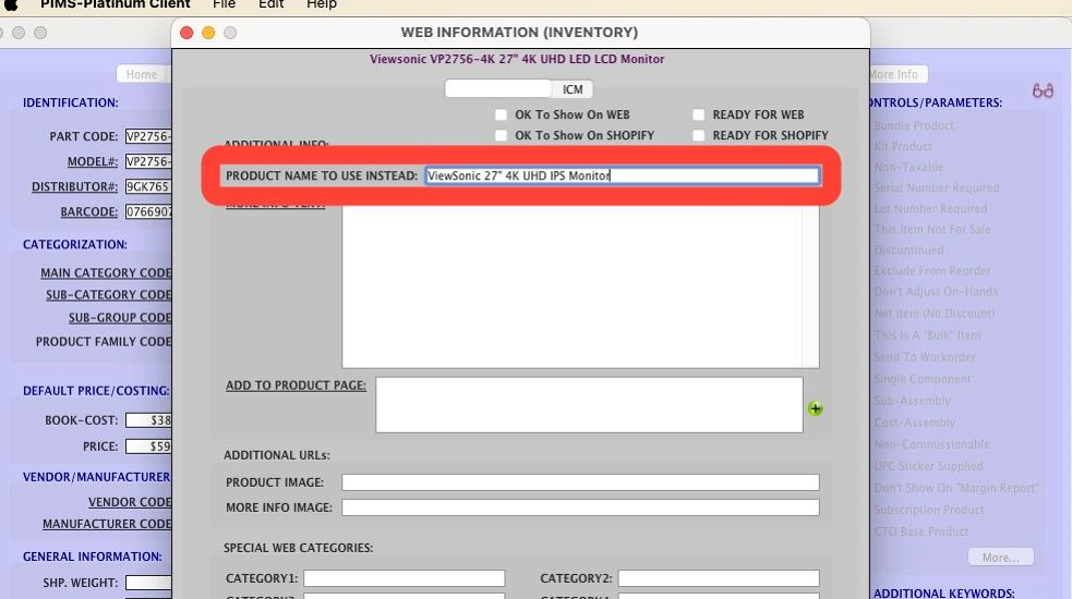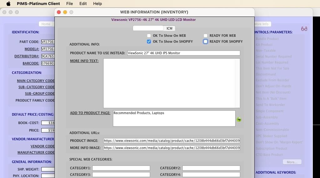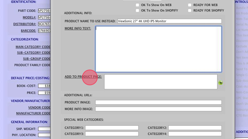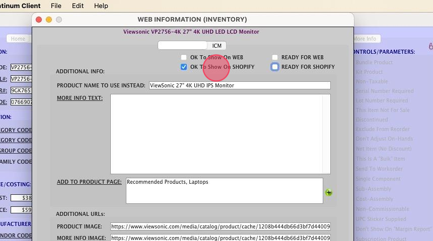 11. Once you are finished updating fields on the inventory record, check the OK to Show On SHOPIFY checkbox to turn on syncing for this product.