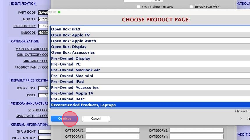 • Enter the variant's base product part code into the APPLE PRODUCT BASE# field.