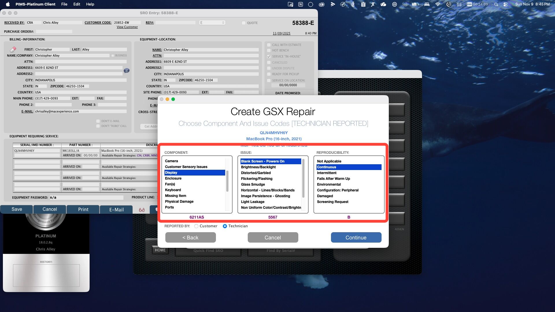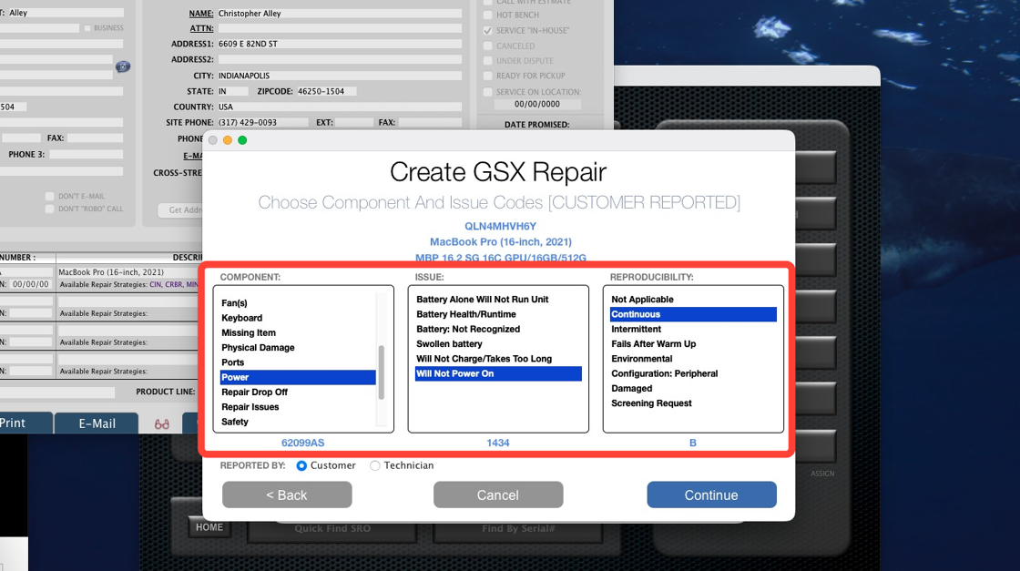 With v7 of the GSX APIs, Apple is now requiring that technicians submit both, the Customer-Reported Component/Issue and the Technician-Verified Component/Issue. (Previously, techs only had to submit the Technician-Verified Component/Issue.) To accommodate this new requirement, ExecUtron made a change to the UI of the Component/Issues screen.